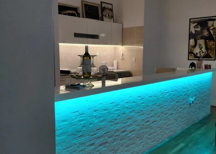 スプリト空港は、このアパートから70キロメートルの距離にあります。 テラスではリラックスできます。